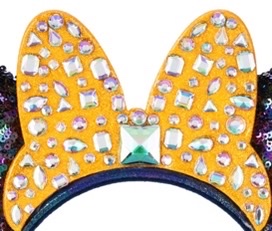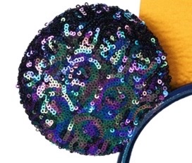 On this headband the ears are both padded and covered in sequins. The sequins are multi-colored and go along with the EARidescent theme for the anniversary. Both the front and back of the ears have these multi-colored sequins, so they look the same on each side.