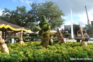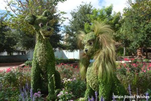 - There are fun topiary characters around Disney Springs. Kids (and adults) can have their pictures taken with the different topiaries. Lady and the Tramp, Kermit and Miss Piggy, and Sorcerer Mickey are some characters that have shown of in Disney Springs as topiaries. There is also a fun fountain with Mickey and different plants that makes for a nice picture.