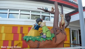 This store is huge. Seriously. It has 12 different rooms for guests to explore. You can find everything Disney here. Whether it’s toys or home goods. The kids will love walking around the store, plus there are different character statues outside where they can take their picture. On a hot day look for the entrance with Stitch over it…you’ll get a surprise. The World of Disney Store is by Starbucks and across from the Waterside Stage. It’s huge, you can’t miss it.