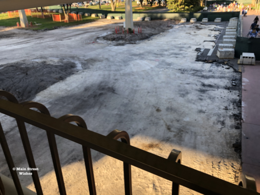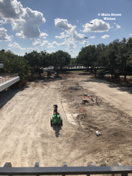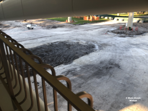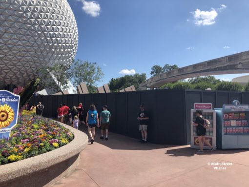 Some of the construction is also visible from the monorail station at Epcot. You can also see quite a bit from the monorail as it circles the park before it stops at the station. Not only can you see the walls around the Leave a Legacy display, but you can see the construction that has already begun on other areas of the entrance.