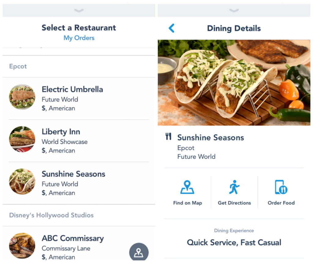 Guests can also find the full list on Disney’s website. If a quick service restaurant is available for mobile ordering, the app icon for ordering food will show below the restaurant’s description. Click the icon to get a list of all the participating restaurants.