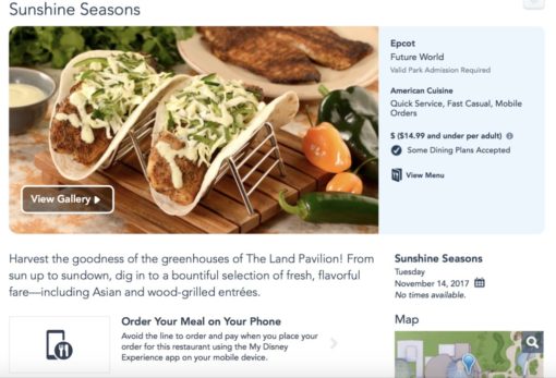 Just last week Disney added three restaurants to the Mobile Order feature and now this week they have added another one. This time it’s an Epcot quick service restaurant.