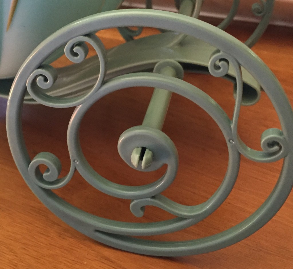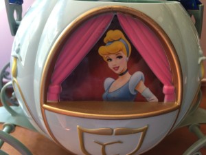 The Cinderella bucket has Cinderella on both sides and the top of the coach opens. The wheels do move, but they don’tfeel as sturdy as the wheels on the Mine Train bucket. There is a strap you can use to carry it around when you are in the parks.