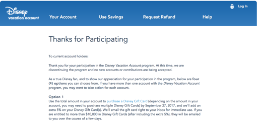 Since it has been discontinued, no new accounts can be opened and guests who have existing accounts will be getting their money back in one way or another. Disney has listed four different options of ways for guests to retrieve their money.