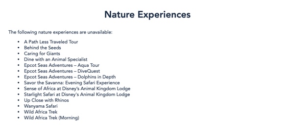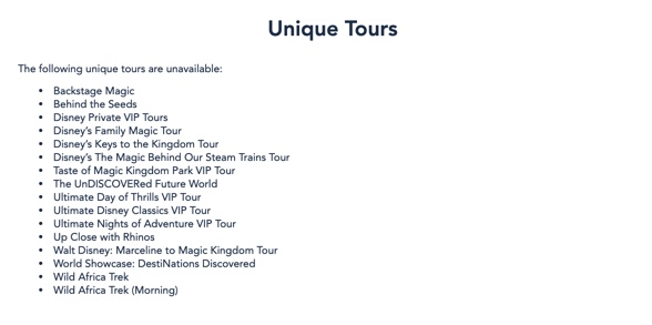 Yesterday, Disney World announced that Mickey’s Not-So-Scary Halloween Party and H2O Glow Nights are cancelled this year. Now they have released an updated list of other events, tours, and experiences that will be unavailable, at least during the initial reopening.