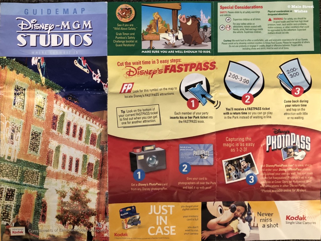Looking at the map you’ll also be able to see some attractions that are no longer in the park. Some of the attractions were tough to see go, like The Great Movie Ride.