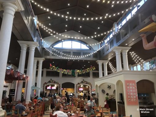 The table service restaurants are: Maya Grill at Coronado Springs, Shutters at Old Port Royale at Caribbean Beach Resort, Boatwright’s Dining Hall at Port Orleans-Riverside (French Quarter does not have a table service, but they can use Riverside’s restaurant), and Trail’s End Restaurant at The Cabins at Fort Wilderness. In addition to the food court and table service restaurant, there are also lounges at Moderates.