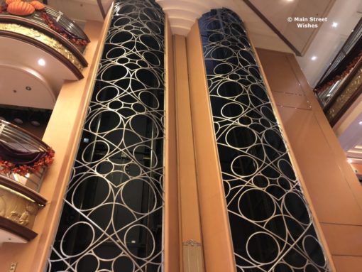 The lobby is open for three floors, so it feels very open when you walk onto the ship. There are little balconies on the upper floors that let you overlook the lobby and they give great views and photo opportunities too. There is also plenty of seating around the lobby area with big windows to look out of while you are relaxing.