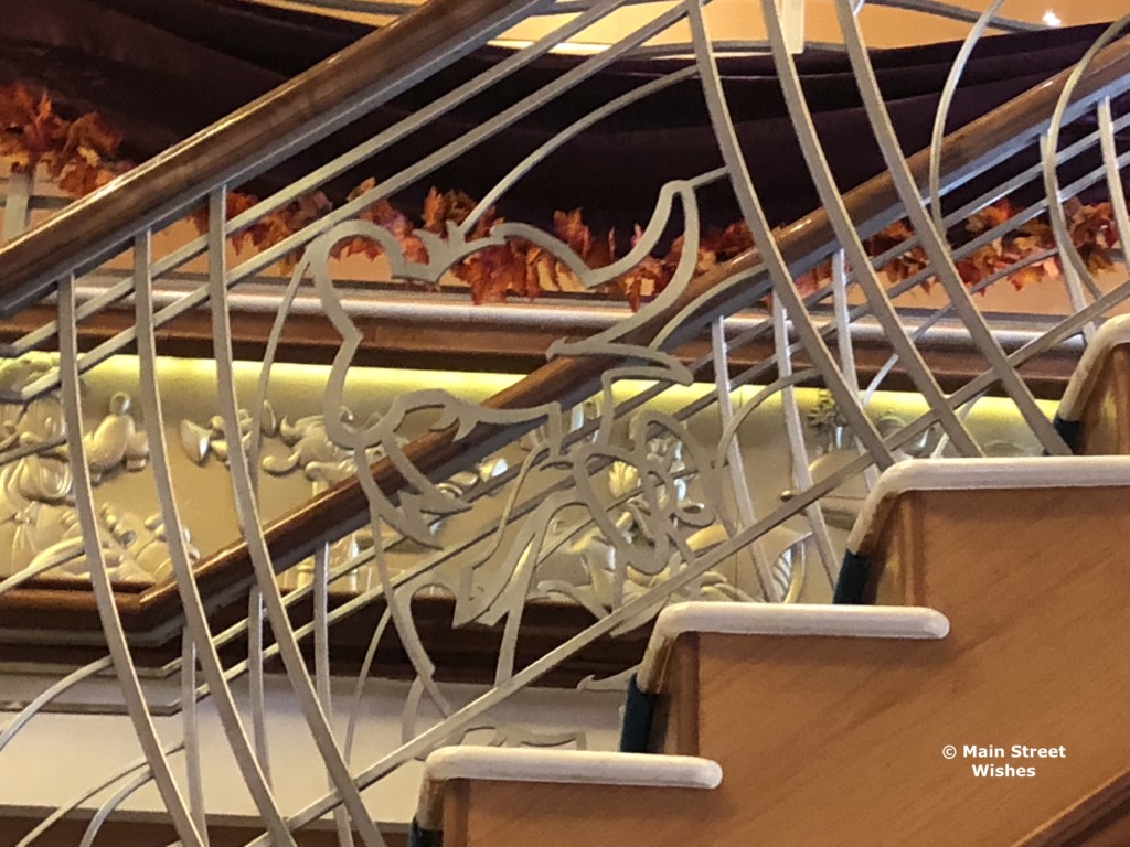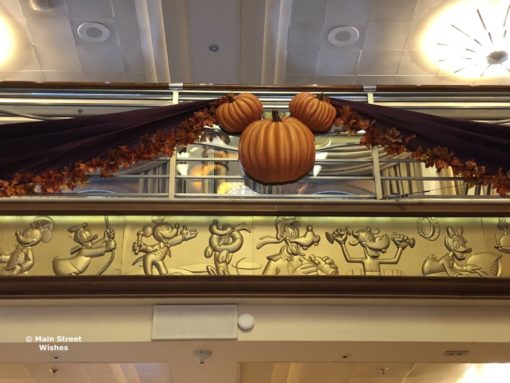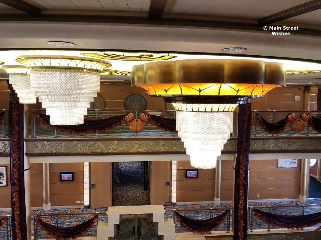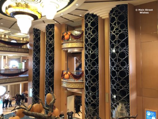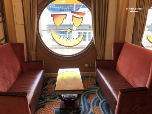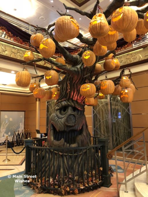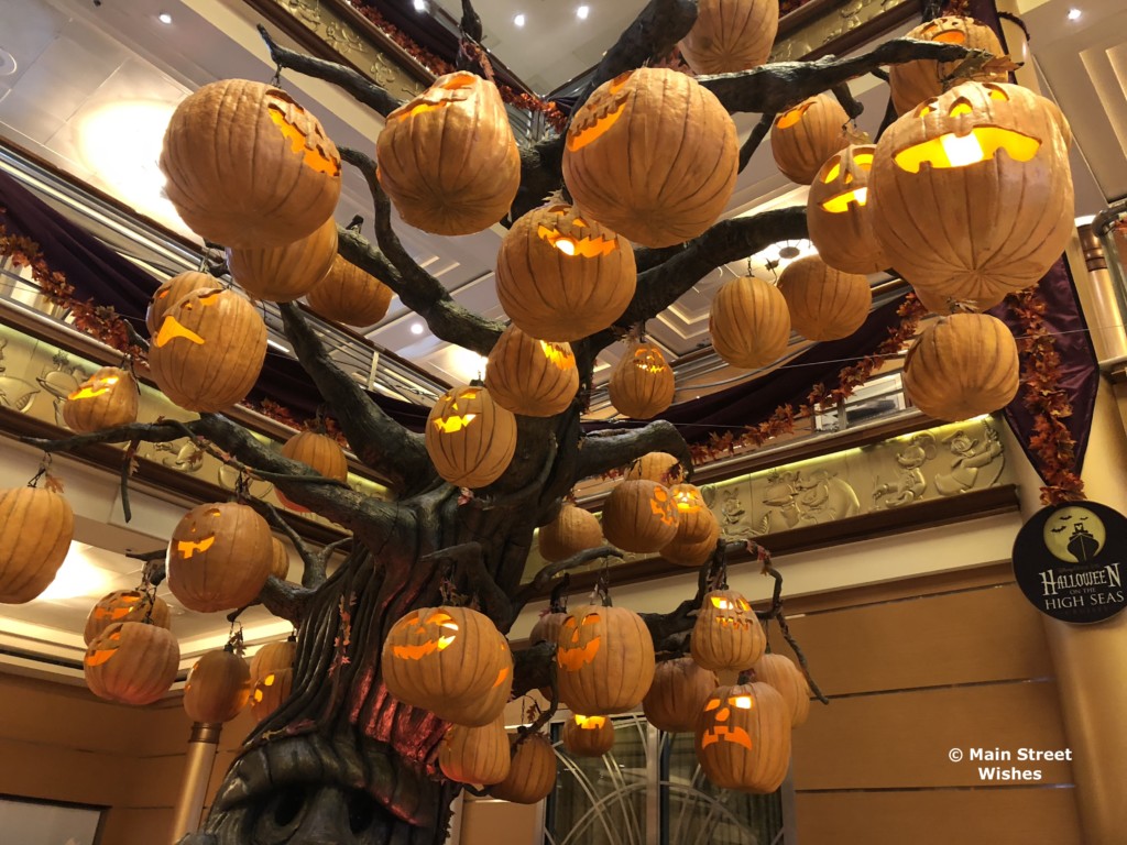 Since it was close to Halloween when we took the tour there were Halloween decorations around the ship. In the lobby there was the magical pumpkin tree with jack-o-lanterns hanging from it and the windows had jack-o-lantern faces on them. In other areas of the ship there were spiderwebs on the windows.