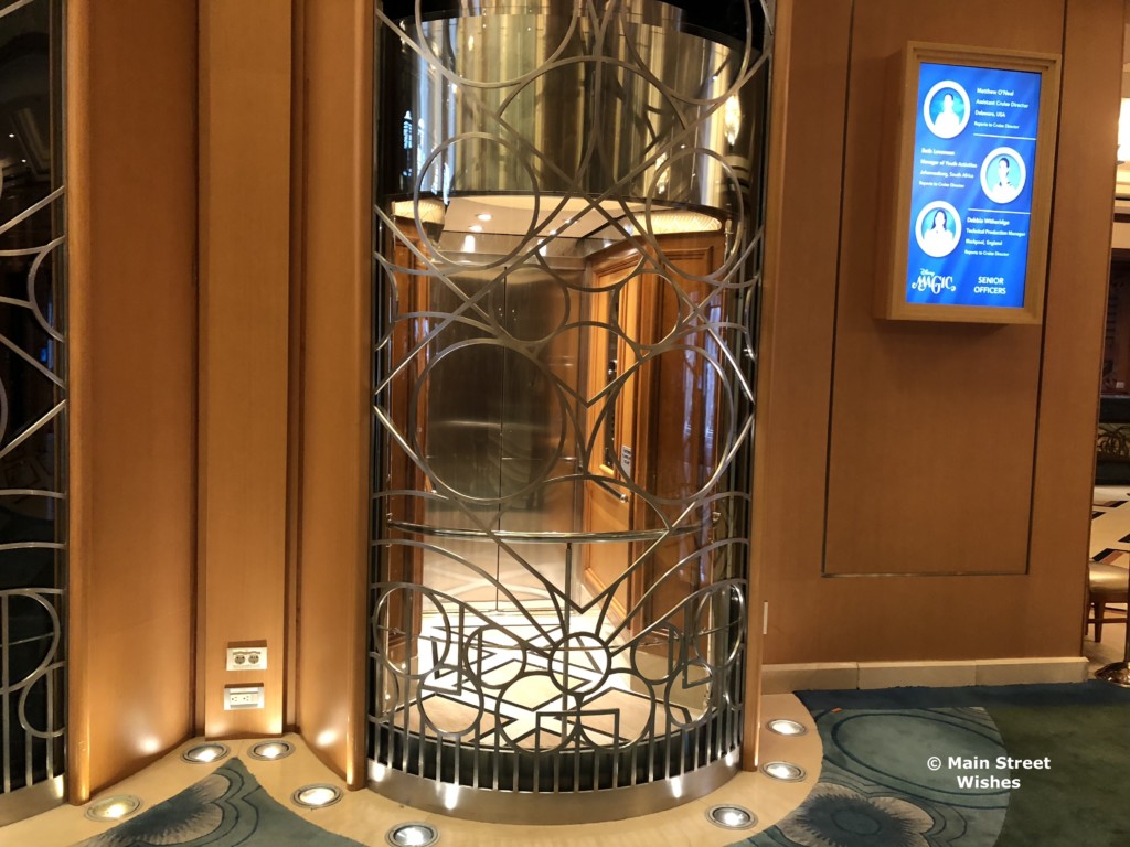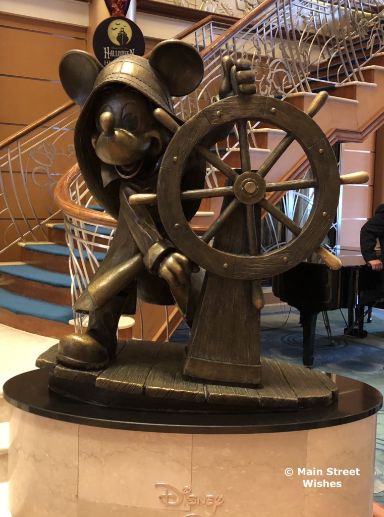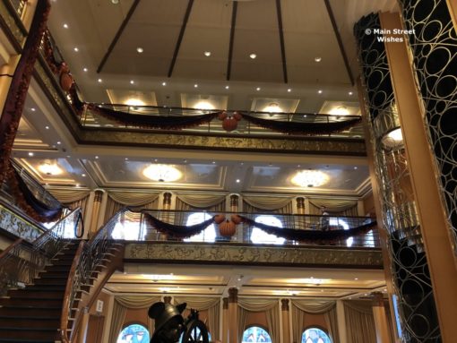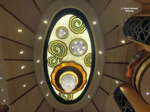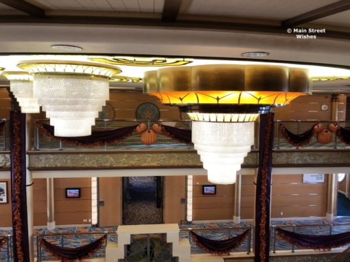 The tour lasted five hours, so we were able to see quite a bit that the ship has to offer. One of the cool facts about the ship is that it was Disney’s first cruise ship, which is why Mickey is the statue you see when you enter lobby. The first thing I noticed, however, was the beautiful chandelier on the ceiling and you can get better view of it on the upper floors.