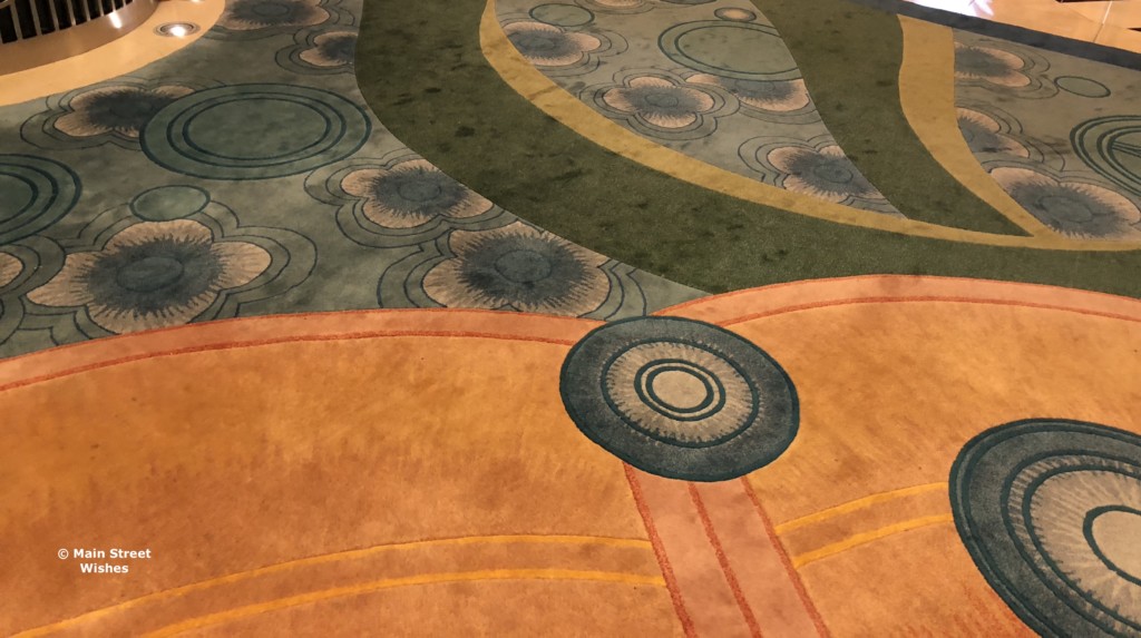 We were told that there is a theme to the carpets (because it’s Disney, so of course there is) and it’s a pretty cute theme. Starting on the lower decks the carpet is supposed to symbolized being on the ocean floor, but as you go up to different decks the carpet changes, getting you closer to land. Leave it to Disney to be that creative with the carpets!