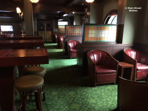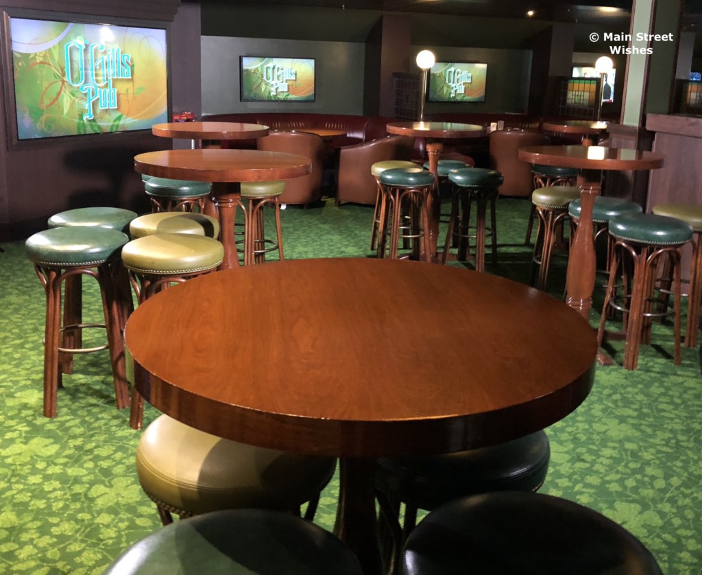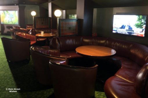 Next up was O’Gills Pub. The theme is inspired by pubs you might find in Dublin. So, there’s lots of dark wood and brass accents. It’s also very green, with 4 leaf clovers on the carpets. This After Hours pub offers nightly entertainment too, like trivia, and there’s plenty of seating in here, as well. Guests have many different seating options, including game tables, rounded booths, and seating by the big windows. It definitely has a nice relaxing feel to it. So if you’re looking for a good place to get a drink and just sit and chat this is a good place for that.