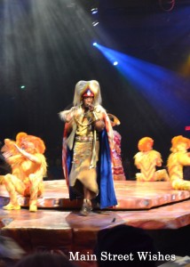 This is a show that is definitely up to Disney standards. All of the performers are fantastic! A favorite among a lot of guests are the tumble monkeys. They are gymnasts that jump all around and perform some pretty impressive acrobatics. There is another performer who is attached to a rope and at points throughout the show she is raised up and circled around; it’s a really beautiful part of the show.