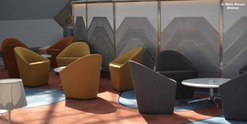 The Member Lounge at Epcot is located in the Imagination! Pavilion. There is plenty of seating where Members can sit and relax. It’s a nice way to take a break from the busy feeling of the park. Some of the seating also have charging ports to charge your devices. When we were there, some of the ports worked and some did not. This may have been fixed since we were there though. It’s a nice feature to be able to charge your device from where you are sitting.