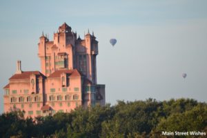 Twilight Zone Tower of Terror is a free fall ride located at the end of Sunset Boulevard. It’s so tall that you can see it see it from a good distance. When we stayed at the Boardwalk Villas we could actually see it from our room. It was a pretty awesome view, especially when some hot air balloons were floating by the tower.