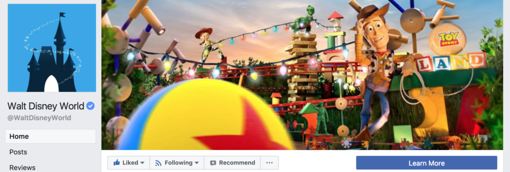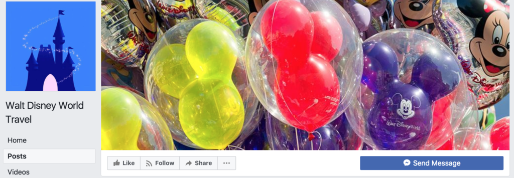 The latest one I have seen circulating is called Walt Disney World Travel, except it is not a Disney page. The reason I know is because it is not a verified page. All of Disney’s Facebook pages will have the verified checkmark next to them.