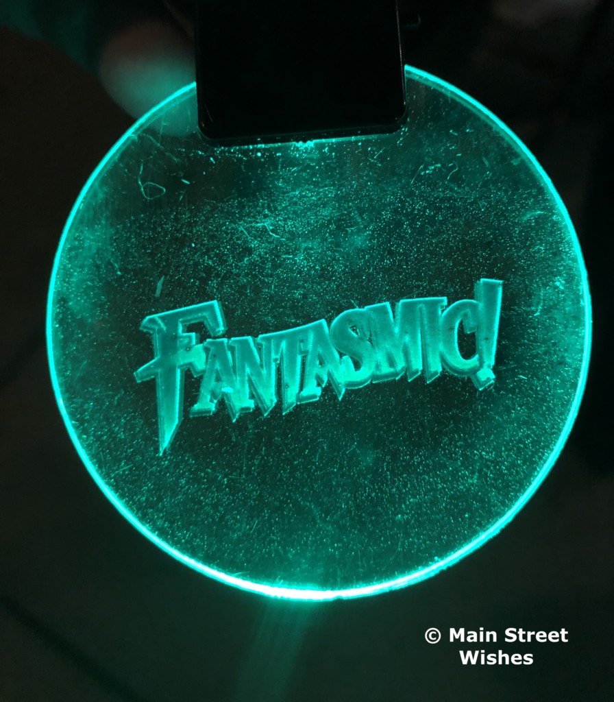 Reservations range from 90 minutes to 45 minutes before the show. Arriving early gives guests a chance to make their way up to the area to get their food and drink, find a seat, and eat their goodies before the show. The entrance to Fantasmic! is on Sunset Boulevard, after Beauty and the Beast–Live on Stage. There will be a Cast Member at the entrance to direct you into the correct line. The next Cast Member you see will be next to a FastPass touchpoint and this is where you will scan to get into the party. The touchpoint is also where you will get your credentials from a Cast Member. The credentials are a fun light-up lanyard that says Fantasmic!