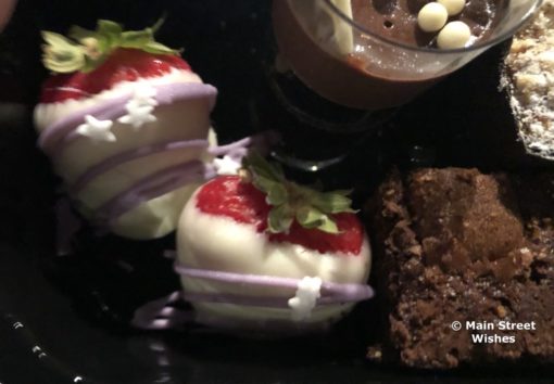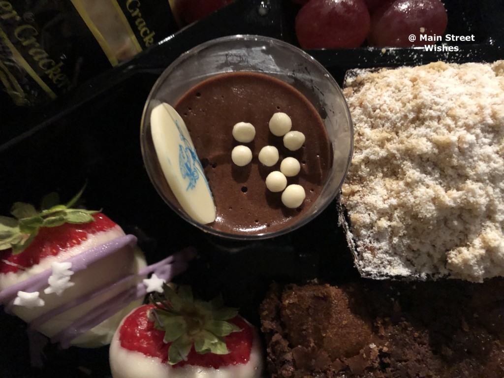 - Chocolate Mouse – Served with crispy pearls on top and a white chocolate coin with Sorcerer Mickey on it.