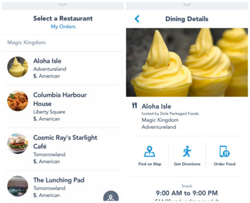 The first snack location on the list is a good one too, because it gives guests the ability to order a Dole Whip from their phone. That’s right, Aloha Isle in Magic Kingdom is now an option for the Mobile Order feature!