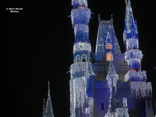 After the ride, we decided to do a little shopping on Main Street U.S.A. On our way Maureen pointed out a hidden Mickey in the lights on the castle. That was a cool one to see.