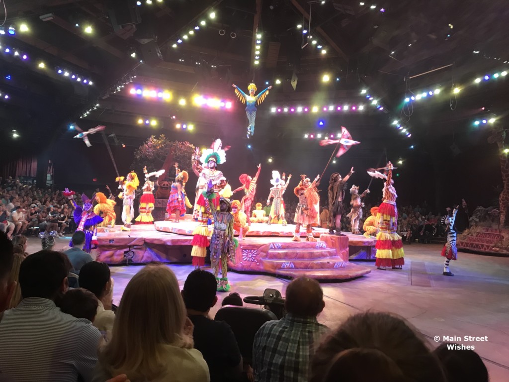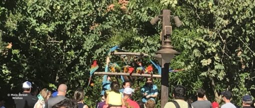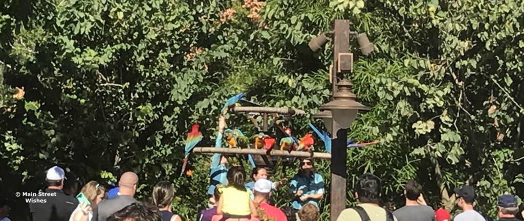 Once inside we waited in line to get our picture taken in front of the Tree of Life, but while we were waiting we were treated to a show. A couple of cast members were near by and they were accompanied by a bunch of Macaws. And when I say accompanied, I mean they flew right over our heads to the perch, it was very cool!
