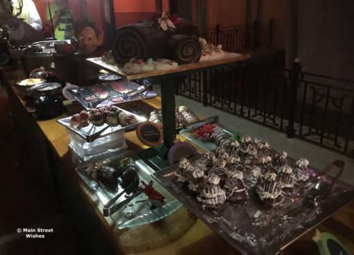Another fun thing we tried was the Jingle Bell, Jingle Bam! Dessert Party. Included with the party is a chance to meet Goofy, a dessert buffet, drinks, an ornament, and special VIP viewing of Disney Movie Magic and Jingle Bell, Jingle Bam! I had never done a dessert party, so it was fun to finally experience one. A full review will be coming up soon.