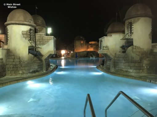 After getting back from the parks we decided to explore our resort a little more. Caribbean Beach is a fun resort, but be warned that there is a lot of construction going on right now. We made our way to the pool, so we could check out the theme. This is a very photogenic pool. If you are staying at Caribbean Beach Resort then you should definitely make your way to the main pool.