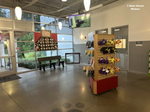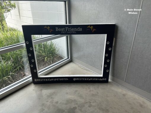 Driving up to the building you will notice that the building has big sketches of Disney dogs and cats on the outside, as well as what looks like the fronts of dog houses. It’s very cute and definitely gives you that fun Disney vibe. Once you enter the building you will see the check-in area for your pet, which is located in a large room that also has pet toys, food, and other pet supplies should you need any. A cute touch in this area is a picture frame on the floor with Best Friends Pet Hotel printed on it. So it’s a cute photo opportunity for your pet (if they’ll sit still long enough for a picture, that is).