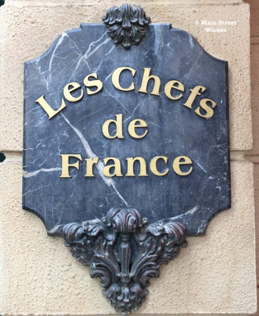 Chefs de France is located in the France pavilion at Epcot. It’s easy to spot as you are walking through the pavilion, because it’s right off the path that goes around the World Showcase. To get to the France pavilion, head to the right when entering from Future World or from the International Gateway.