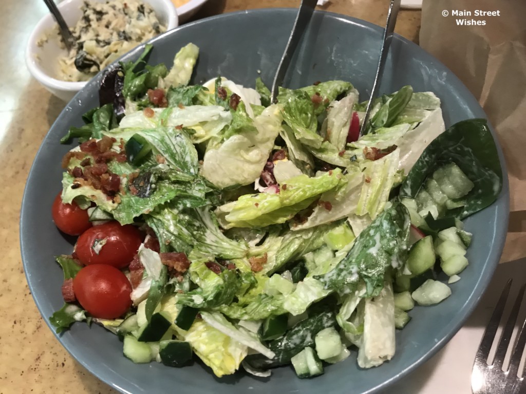 Since the chefs use food grown in the greenhouses there they sometimes come up with other dishes for guests to try. When Maureen and I ate at The Garden Grill the chef had extra spinach, so he made a chicken and spinach dip for the tables. The dip tasted fresh and it was so good!