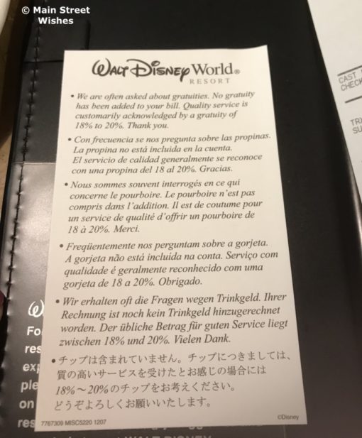 This came with our receipt. It’s good info to have, especially for those on the Disney Dining Plans.