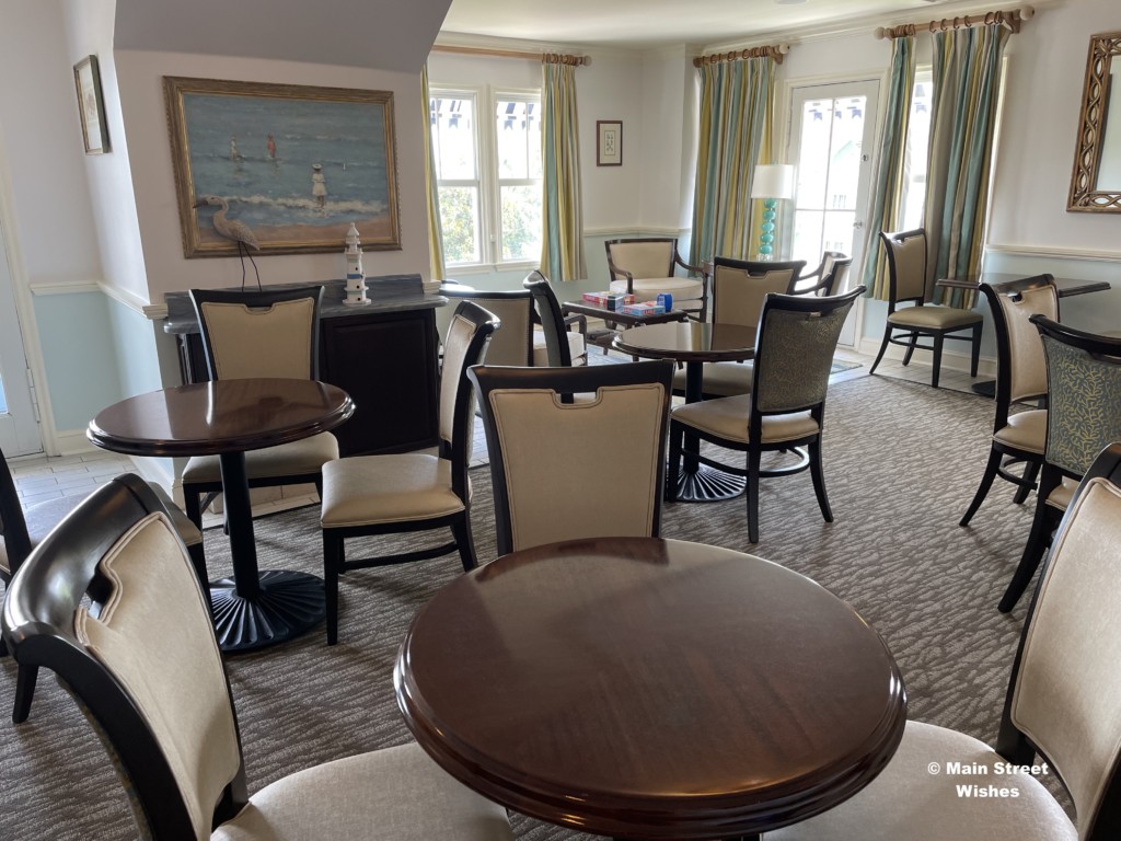 There are some two-top and four-top tables in the lounge, as well as some some arm chairs and a coffee table with games for guests to play. If you arrive before your room is ready, and want to change for the pool, there is a bathroom for guests to use in the lounge.