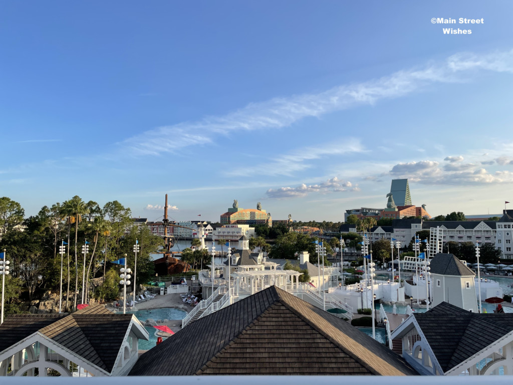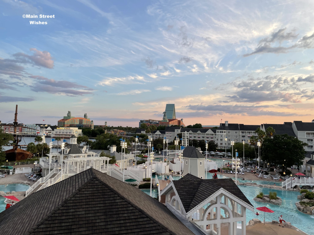 We were in a water view room and we had a view of the pool. It was nice, because we could see Crescent Lake and across to the BoardWalk area. So it was relaxing to sit on the balcony at night with all the lights. One night we caught a thunderstorm rolling in and just sat on the balcony to watch.