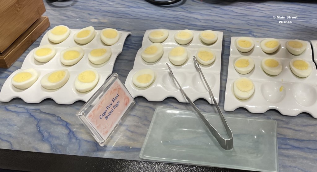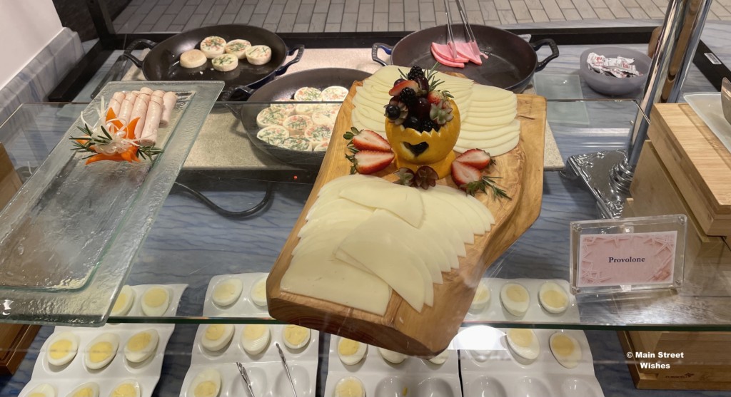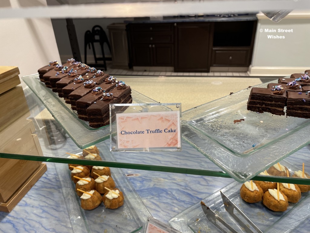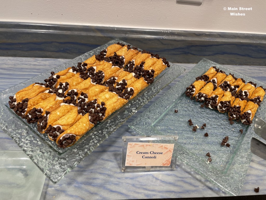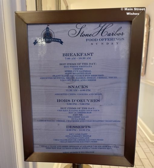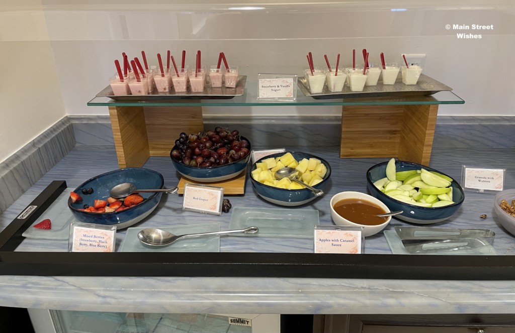 The lounge is open at different times throughout the day with different types of food. There was always at least an hour break in between the different meal types, so keep that in mind. There should be a schedule posted outside the door each day with the times and the food that will be available that day. It’s nice to be able to see what will be available during each time in case there’s nothing that’s appealing to you, so then you can make a dining reservation instead. We never really went during the hors d’oeuvres time, but you can definitely make a meal out of what is offered, because you can go back for more if you’re hungry. Breakfast was probably the favorite, with dessert being a close second.