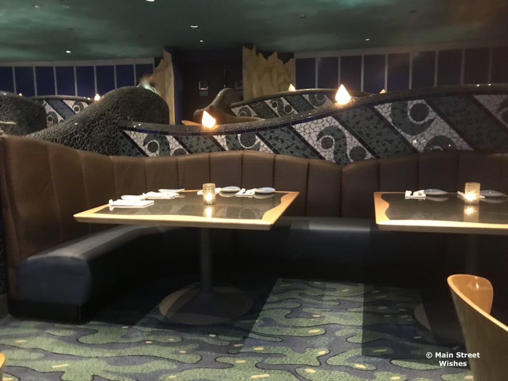 There is an octopus that has wrapped its tentacles around the front desk, the lights look like plant life that are swaying in the current, and the floor has a wave pattern. It’s a fun theme that is well executed from the entrance of the restaurant to the dining room.