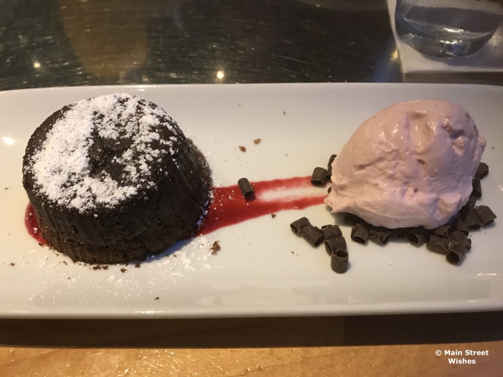 For dessert I tried The Chocolate Wave. This was like a chocolate lava cake (but not as gooey) that you can find at most chain restaurants and it came with raspberry cream (delicious!).