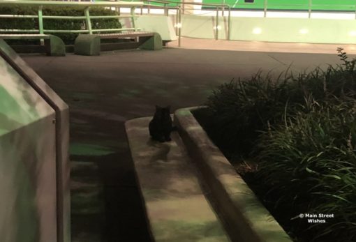 Plus, you never know what you are going to see that late at night in Magic Kingdom. I have always heard about the cats Disney has in the parks to control the mice situation, but I’ve never seen them. Not until the After Hours event that is. There was no one in the section of Tomorrowland by the Carousel of Progress and as I got closer to one of the benches I noticed a black cat sitting on the bench. It was very cute, but I obviously spooked it because it didn’t take long for it to run back to the bushes.