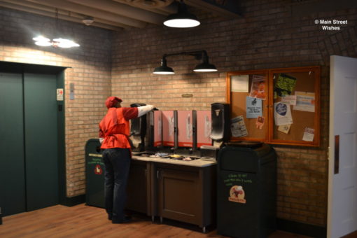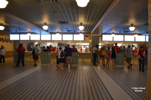 The quick service area is very open and there are a lot of cast members to help move things along. When I was there a cast member was handing out menus so guests could look while they wait. There are screens with the menu above the kitchen too, so don’t worry if you don’t get a menu. You will be able to see the menu while you wait in line. The kitchen is open, which allows you to see into the kitchen when you walk in the restaurant. That helps to add to the openness of the restaurant.