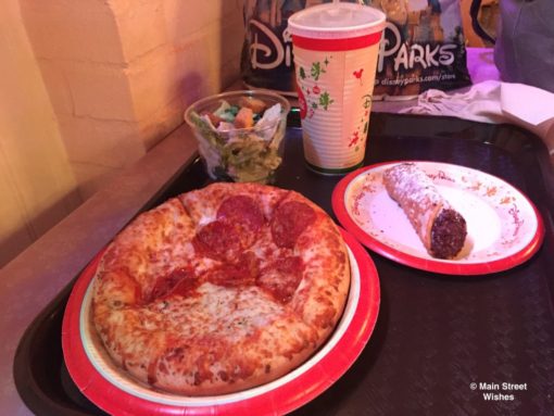 I decided on the pepperoni pizza and a cannoli for dessert. We have a lot of great pizza restaurants around where we live (Connecticut/New York area), so it’s easy to get a little picky about pizza. However, for fast food pizza this was not bad. It was a quick meal for the middle of the day and it worked. The salad that came with the pizza was good too and I enjoyed the cannoli at the end of the meal. It was a filling lunch and only cost around $20.