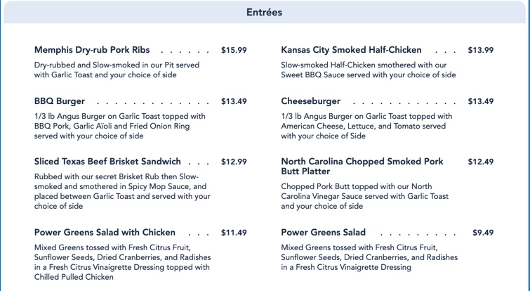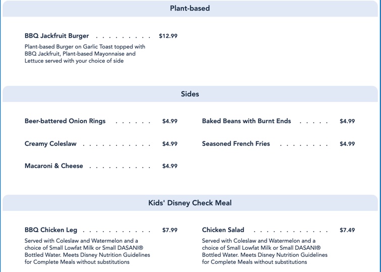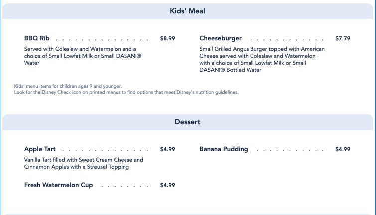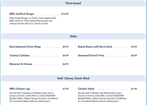 Full Menu (From Disney’s Website)