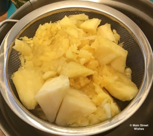 All the pineapple I cored I put into a strainer and placed it over a bowl to drain the juice. The fresh juice can be used in the Lapu Lapu and you should be able to drain enough for the drinks. That’s once less thing you have to buy for the drink.