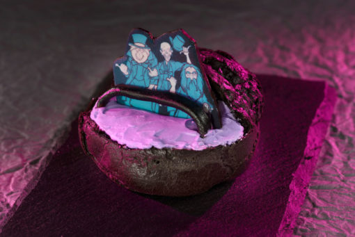 - Hitchhiking Ghost Dessert – A cream puff filled with cookies and cream mousse, topped with a chocolate piece featuring the Hitchhiking Ghosts. (at the party only)