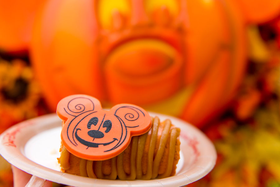 - Pumpkin Cheesecake (gluten friendly)- Topped with a chocolate Mickey Pumpkin, gluten-friendly vanilla pecan cake and caramel glaze. (at the party only)