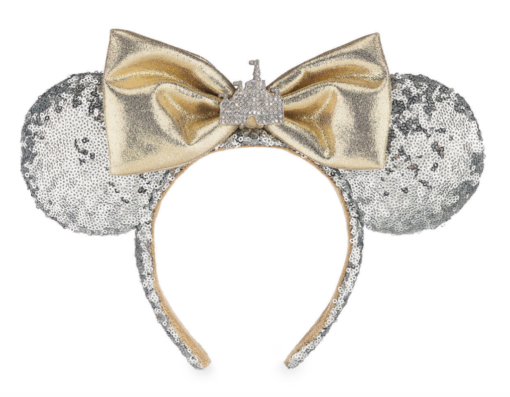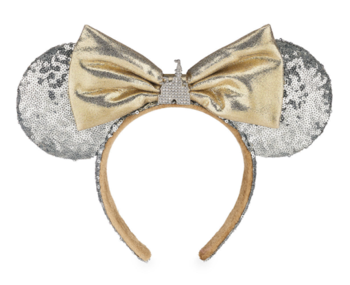 I wasn’t positive what the color of these ears would be, because the colors looked different in different pictures. However, on shopDisney.com the picture shows the ears as silver and the bow as gold. The inside of the headband looks like it’s a gold felt to match the gold bow. The castle embellishments looks silver in the picture, so they match the ears and the outside of the headband.