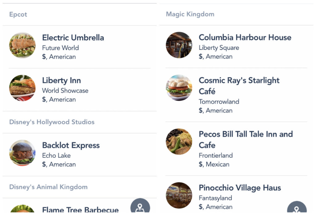 A couple restaurants have been added since the last update, but one seems to have been taken off the list. Epcot now has two restaurants on the list with Liberty Inn joining the Electric Umbrella and Hollywood Studios is now on the list with Backlot Express. Magic Kingdom is down one, because Tomorrowland Terrace is no longer on the list. Hopefully it will be added again in the near future.