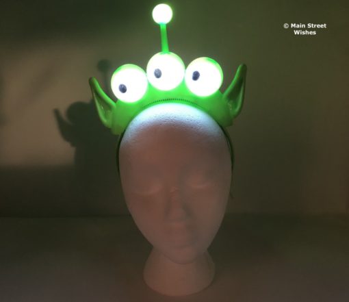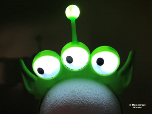 The second big feature is that the eyes and the antenna light up! So while you are walking around the parks at night you can turn the headband on and everyone will see the bright alien eyes moving back and forth as you walk. Those are two really fun features for this headband!