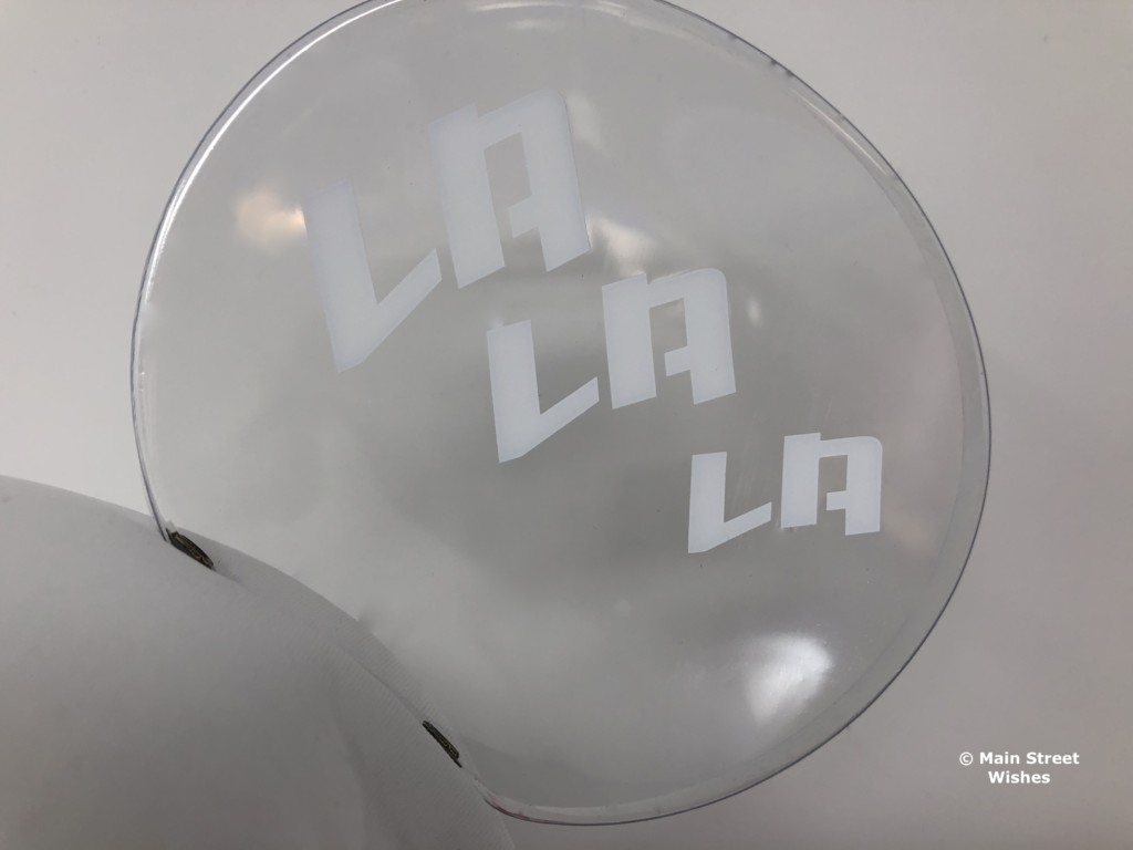 The ears are made of a thin plastic, so I would be careful with how you store this hat. The ears together spell out the phrase that Baymax says when he and Hiro fist bump (Balalalala). One ear says “BA LA” and the other ear says “LA LA LA.” It’s a pretty cute feature on the hat.