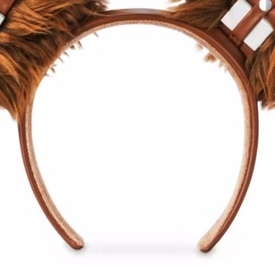 The ears on the headband are what really show the theme. There’s a brown shaggy faux fur material that covers both sides of the ears. The faux fur looks like the fur that covers everyone’s favorite Wookiee. In addition to the faux fur, on the front of each ear is a faux leather bandolier applique with metal studs. The appliques are just on the front of the ears, the back of the ears just have the faux fur.