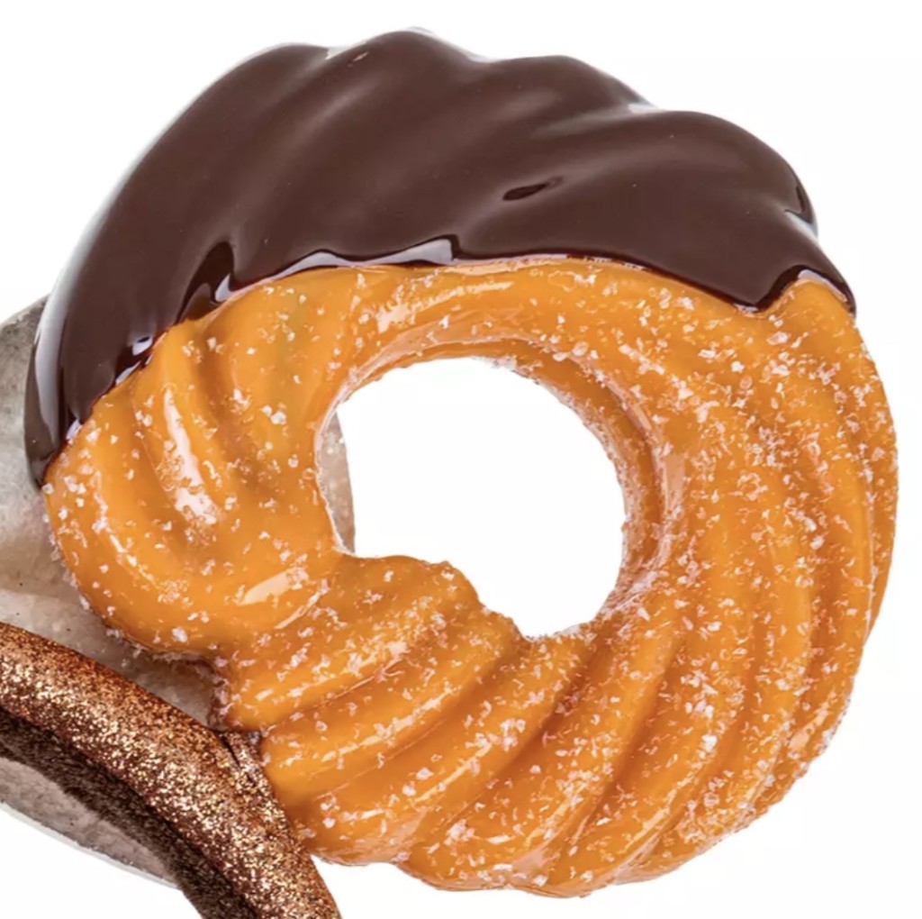 Looking at the ears, the churro design really does look pretty realistic. Both are covered with specks that look like the sugar coating on real churros and there’s a bit of “chocolate frosting” on top of each ear. The front and back are the same on these ears.