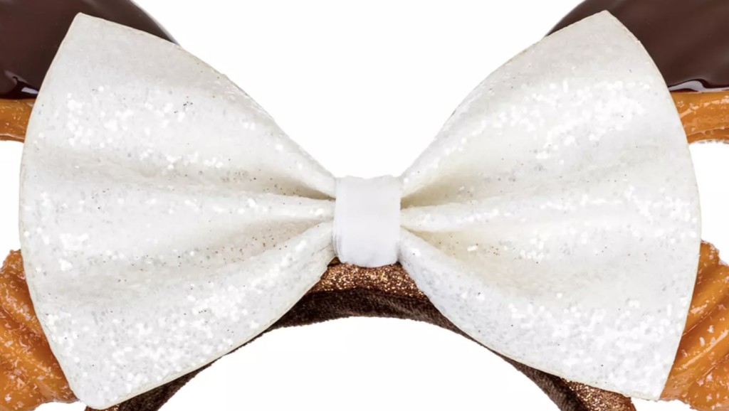 The bow on this headband is pretty simple, but it still pops between the churro ears. To make the bow sparkle a bit, Disney used a white material with glitter, so it looks like the sugar on the churro ears.